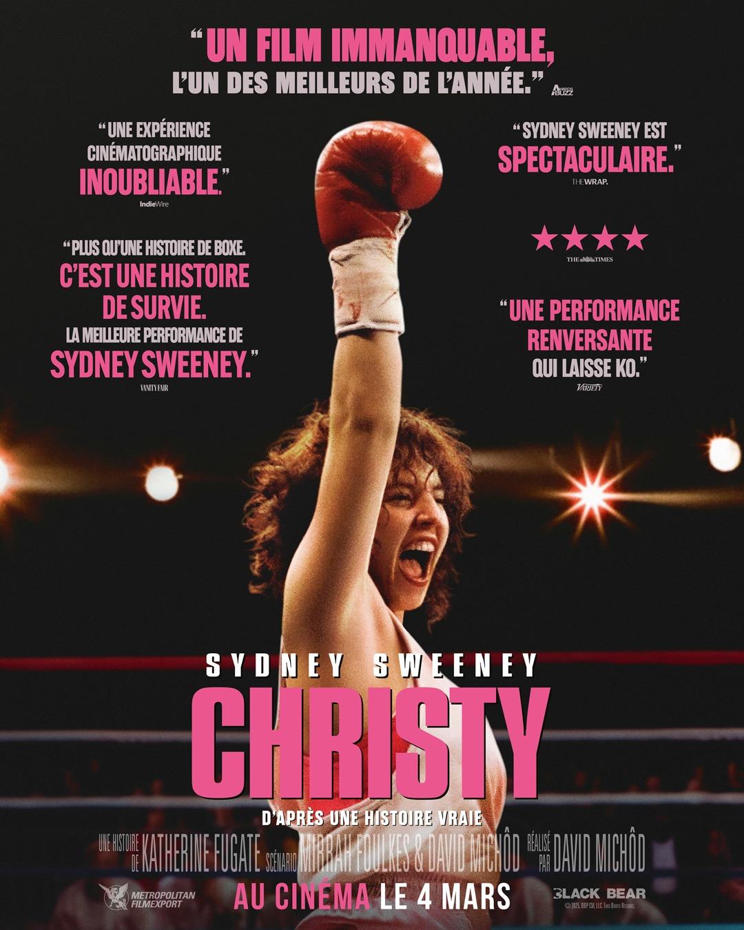 Inspiré d'une histoire vraie, Christy retrace l'ascension tumultueuse de la boxeuse Christy Martin, qui est passée de l'anonymat à la célébrité. La légendaire ténacité de Christy sur le ring cache en réalité des combats plus intimes avec sa famille, son identité et une relation toxique qui pourrait bien se transformer en une question de vie ou de mort.